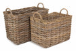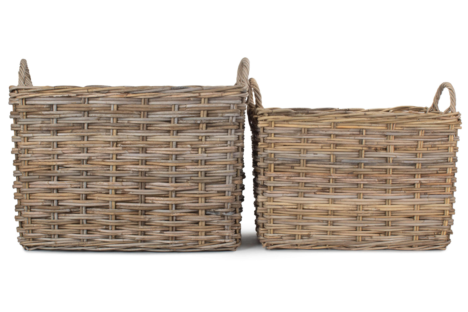 Rectangular Grey Rattan Hallway Log Basket Set 2