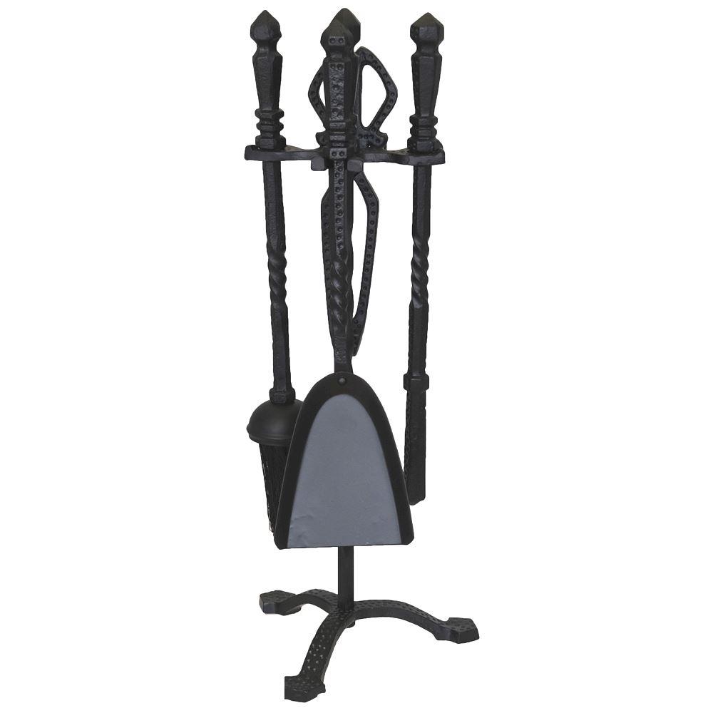 This Black Gothic 4-Piece Companion Set would be a stylish and practical addition to your fireside. Its design is perfect for those who appreciate a touch of gothic elegance in their home decor. This set is built to help you manage your fire efficiently while maintaining a clean hearth area.