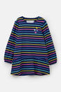 The Lottie Tunic in navy and stripes is a versatile piece perfect for any season. Made from 95% cotton with a touch of spandex, it offers both comfort and stretch. With vibrant stripes and a heart motif, it adds finesse to any outfit. Wear it over leggings or shorts for a stylish and practical look.
