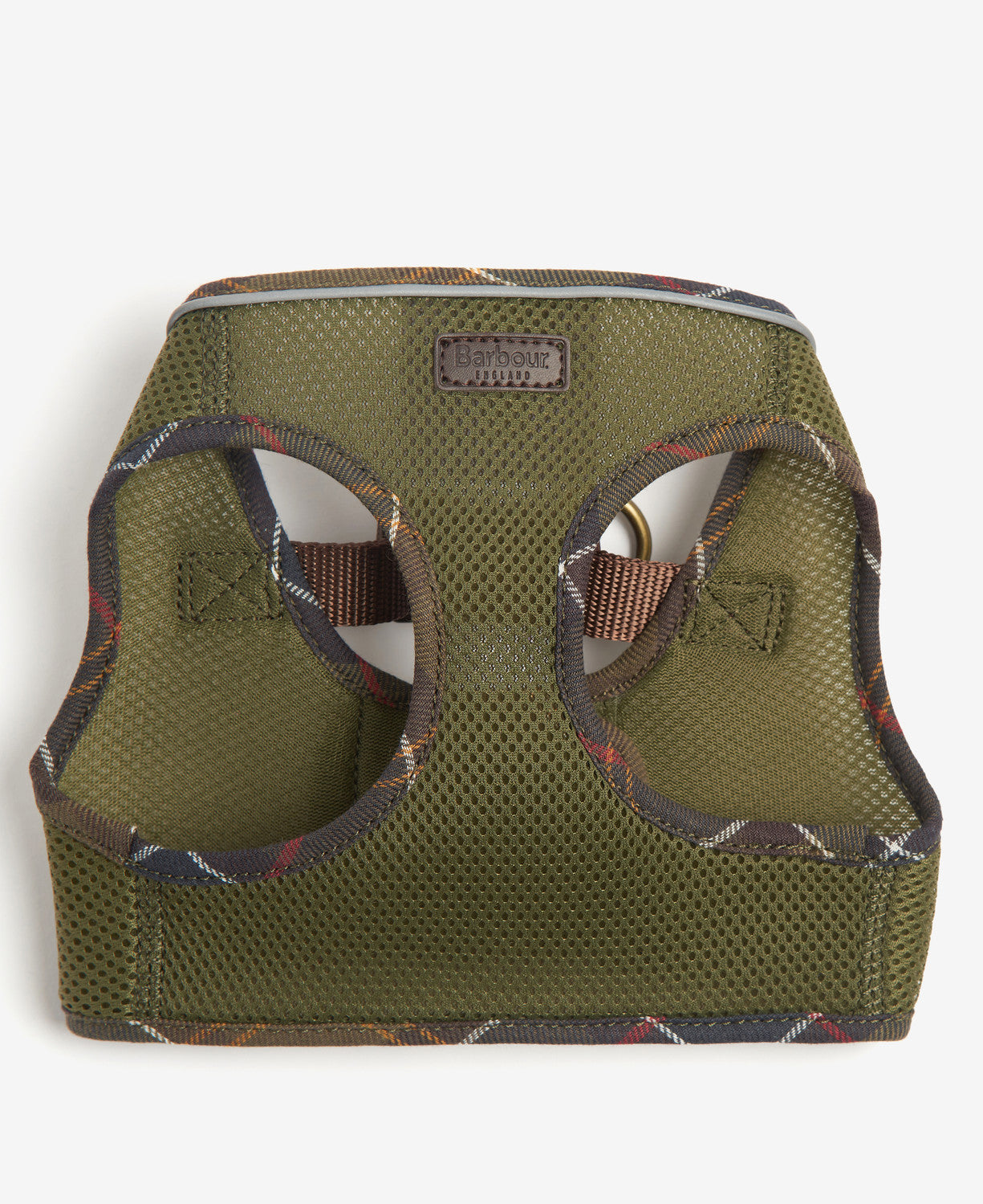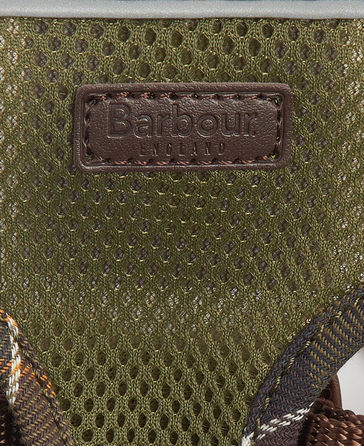 Lightweight and breathable mesh step in harness trimmed in Barbour tartan with reflective piping to the front. Easy fastening clip and Velcro strap.