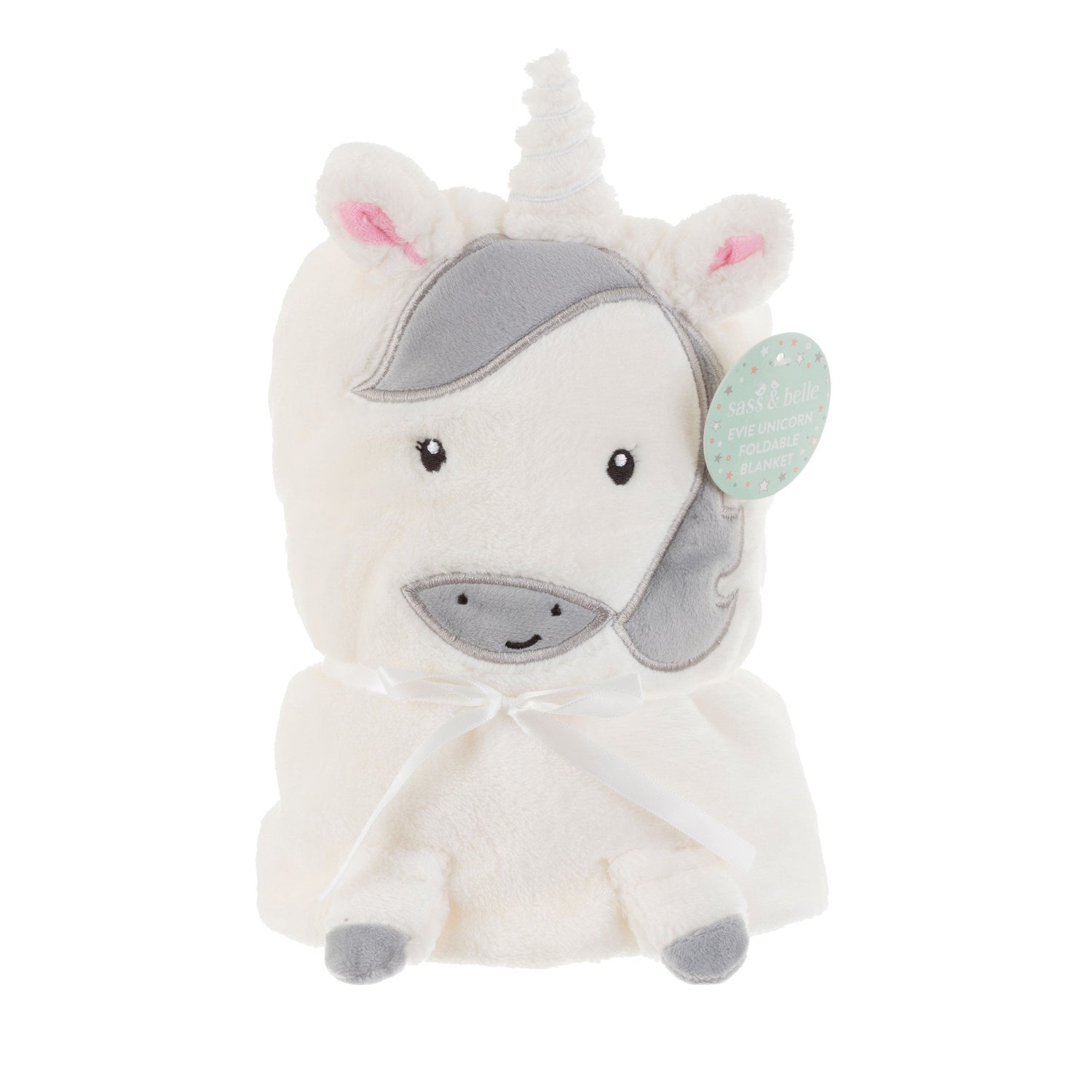 Snuggle your little one up with this fluffy dreamy blanket, featuring a magical unicorn with details of dreamy white and gentle grey.