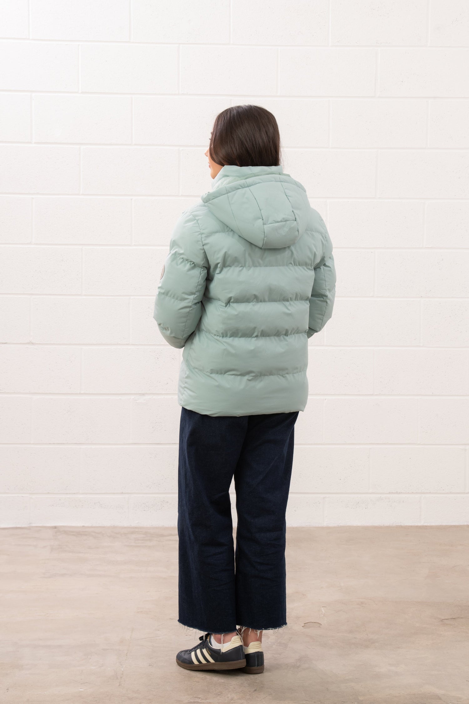 Stay warm and stylish with the Lighthouse Margot Ladies Coat in Sage. This hip-length coat features 280g of 100% recycled wadding, offering dependable insulation for chilly days. Its water-repellent exterior keeps you dry, while the adjustable, detachable hood and roomy fit provide versatile comfort and layering options. Designed for everyday wear, Margot includes practical details like storm cuffs, secure pockets, and a two-way zip, making it the perfect blend of function and fashion for colder weather.