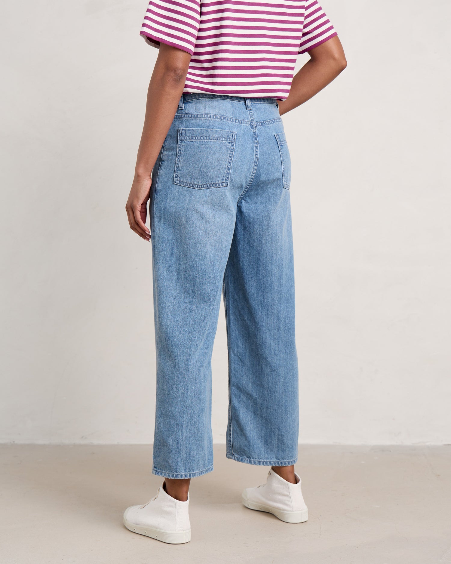 Unleash your effortless style with Seasalt Barnes Crops. Made from light wash rain slub denim for a non-stretch, relaxed fit. These wide leg crops are perfect for a casual, yet chic look. Elevate your wardrobe today!
