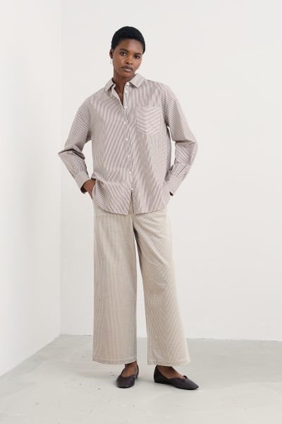 Experience ultimate comfort with the Sea Path Shirt in Mini Sunrise Elderberry. Crafted from pure organic cotton, this oversized longline shirt offers natural breathability and a soft touch for all-day wear. Its relaxed fit is enhanced by dropped shoulders and gentle back yoke gathers, while the rounded hem ensures a polished look when worn loose. Classic details like a chest pocket, a smart collar, and buttoned cuffs give timeless style that effortlessly complements your laid-back days.