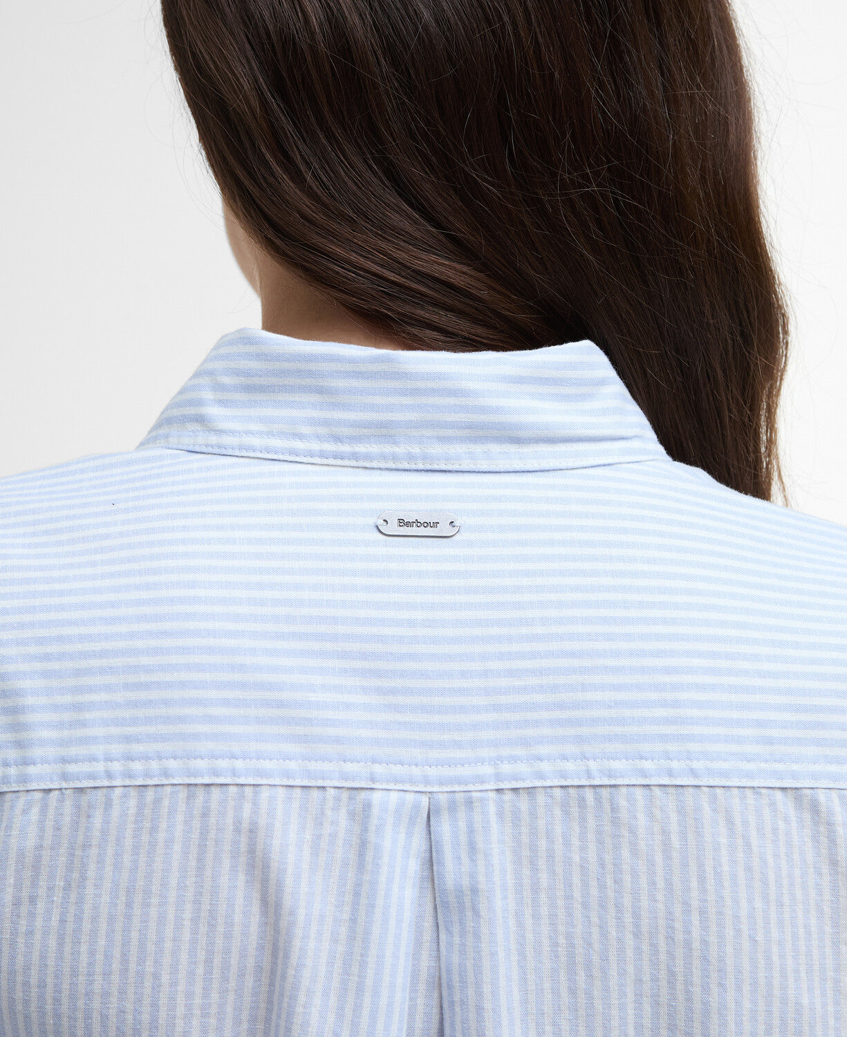 The Barbour Seaglow Dress is a must-have for any fashion-forward individual. Made with a lightweight cotton linen blend, this midi shirt dress features stylish striped detailing and branded buttons. The horizontal stripe cut yoke and pocket add a unique touch to this versatile dress that can be worn for any occasion. Elevate your wardrobe with the Barbour Seaglow Dress!