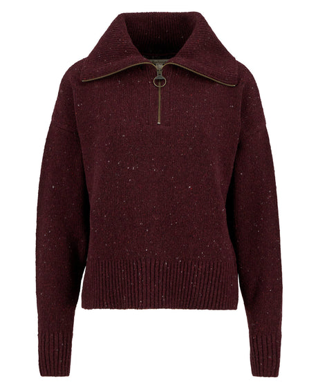 Barbour Lavensdale Half Zip Knitted Jumper - Black Cherry