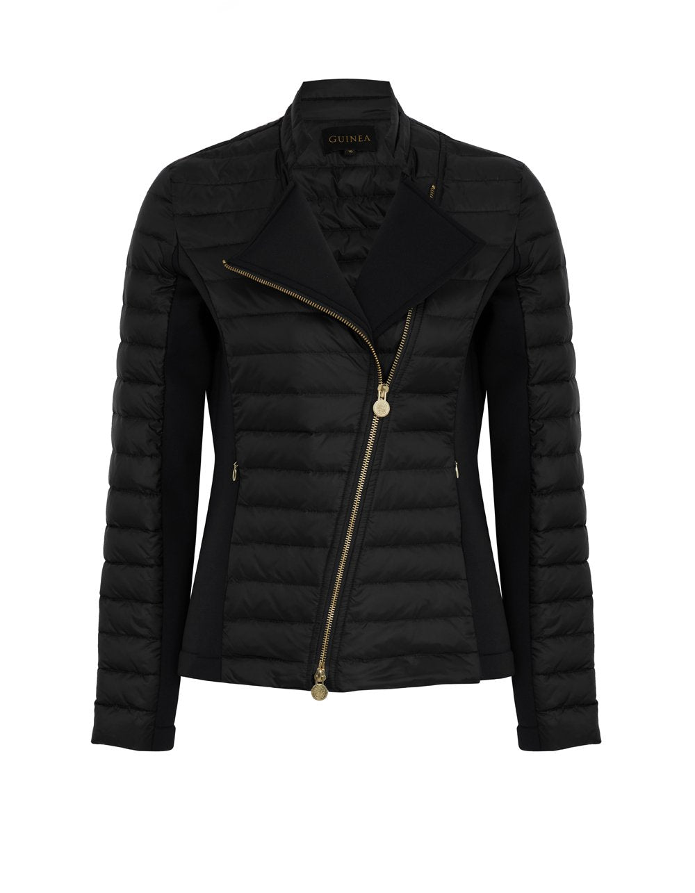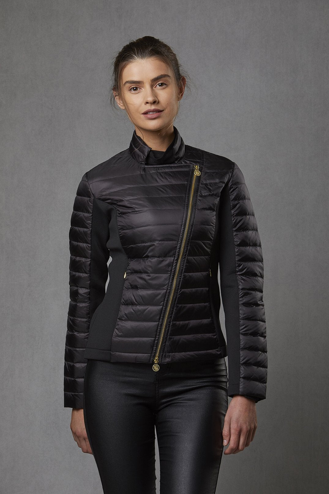 The Roxie biker jacket has the same lightweight body panels with sculpted, super shaping stretch sides and under sleeve featuring a diagonal zip opening for a flattering fit. The dipped hem at the back creates the perfect silhouette and Guinea zippers give the perfect and discreet shot of glam.