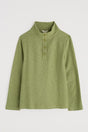 Experience versatile comfort with the Last Boat Sweatshirt in Moss. Crafted from soft loopback jersey cotton, it features a stand collar with unique tonal buttons for a stylish touch. Its relaxed fit makes layering effortless, whether worn under a cosy coat in winter or over a striped top on cool summer evenings. Perfect for year-round wear, this sweatshirt blends comfort and subtle detail to elevate your casual wardrobe.