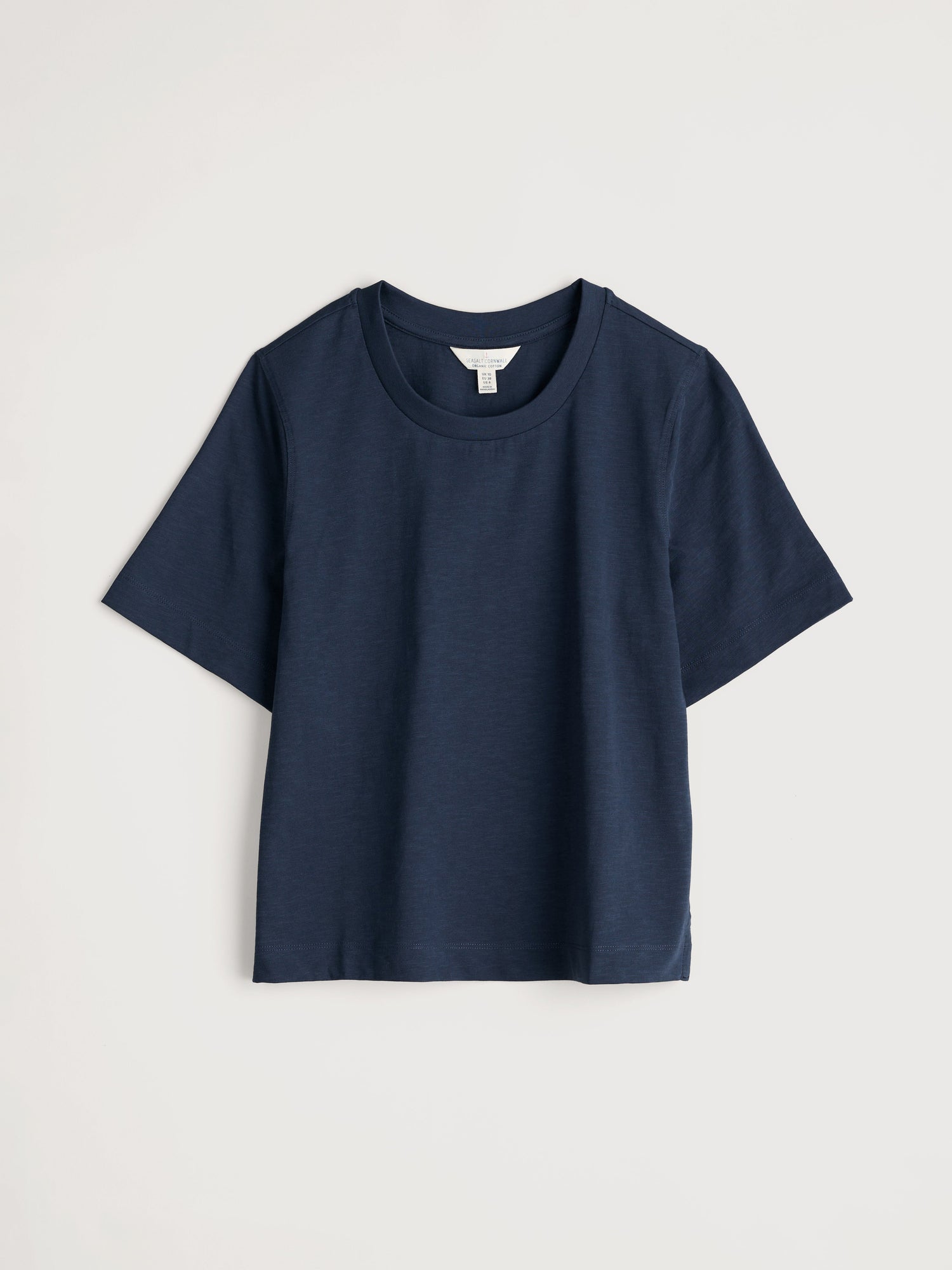 Elevate your wardrobe with our Seasalt Copseland T-Shirt! Made from soft organic cotton, this boxy fit t-shirt features a comfortable ribbed neckline and a slightly shorter length, perfect for pairing with high waisted bottoms. In beautiful Cornish colours, it's a versatile staple that exudes both style and comfort.