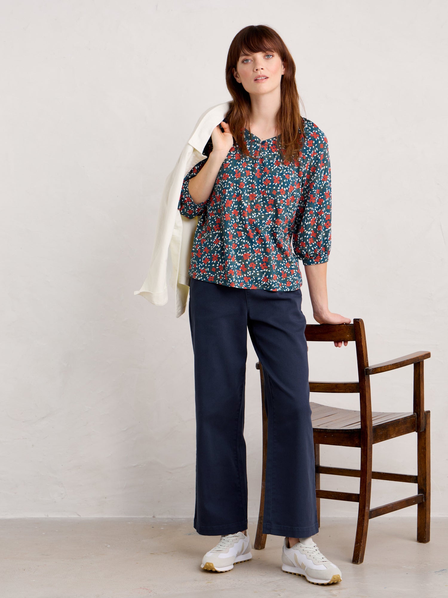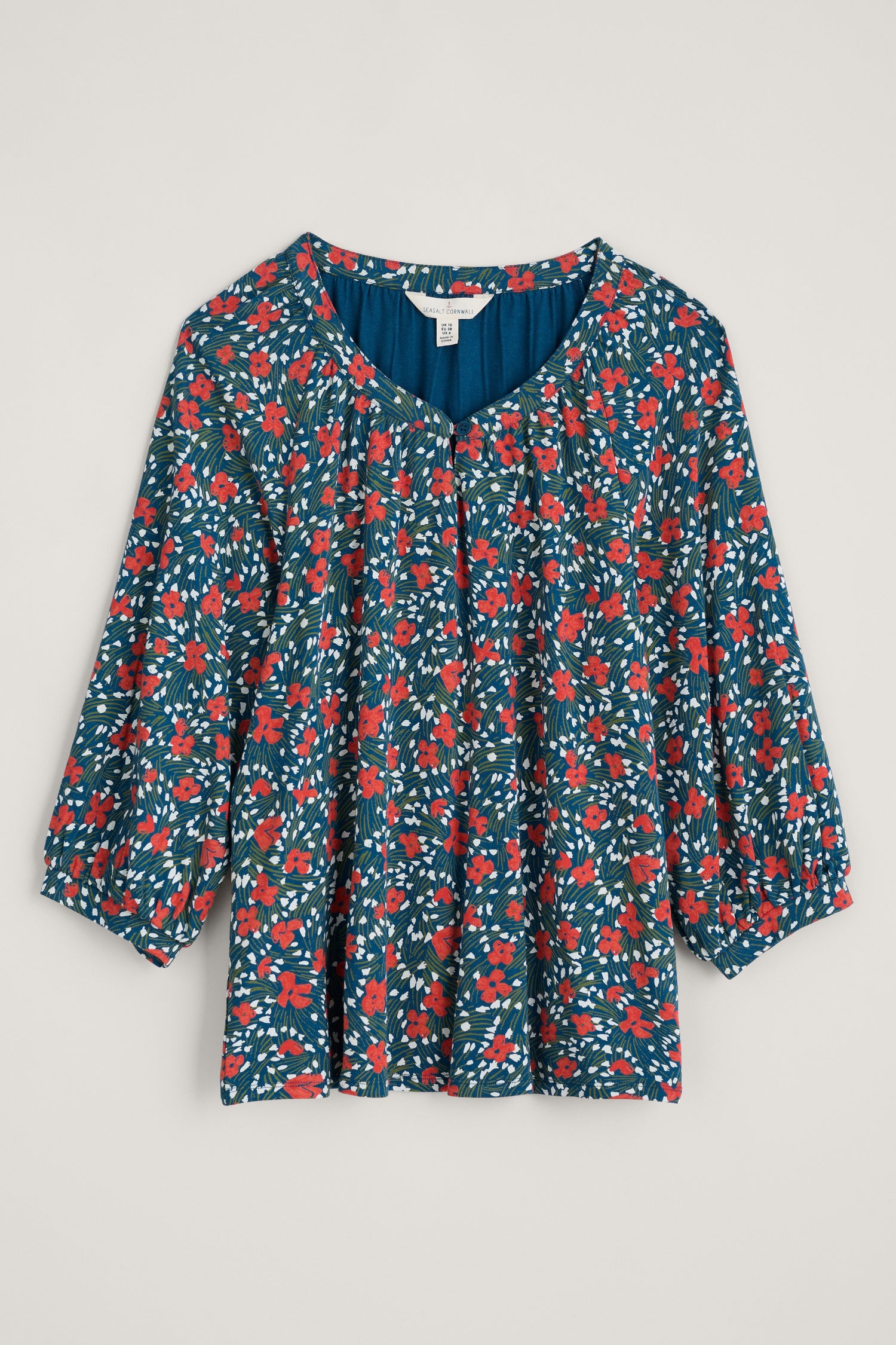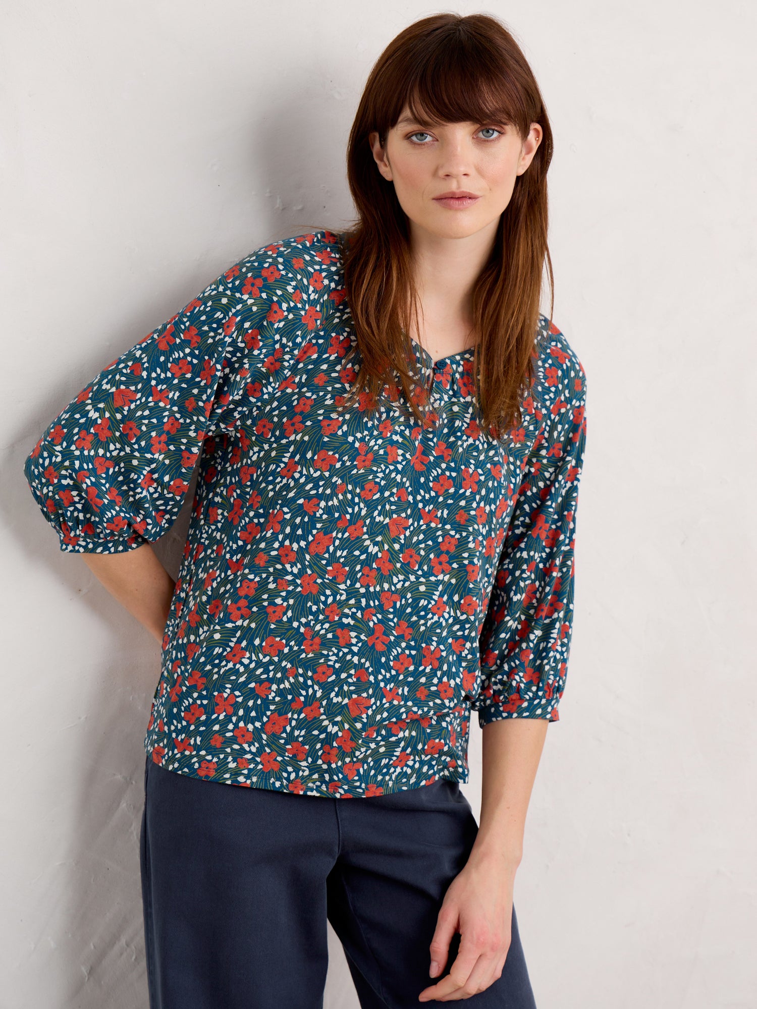 Seasalt Garlanding top feminine 3/4 blouson sleeves for an airy feel, as well as detailed gathers at the neck and a swingy A-line fit. Crafted from a soft jersey blend, it has a beautifully soft weight and drape - making it the perfect style for everyday ease.