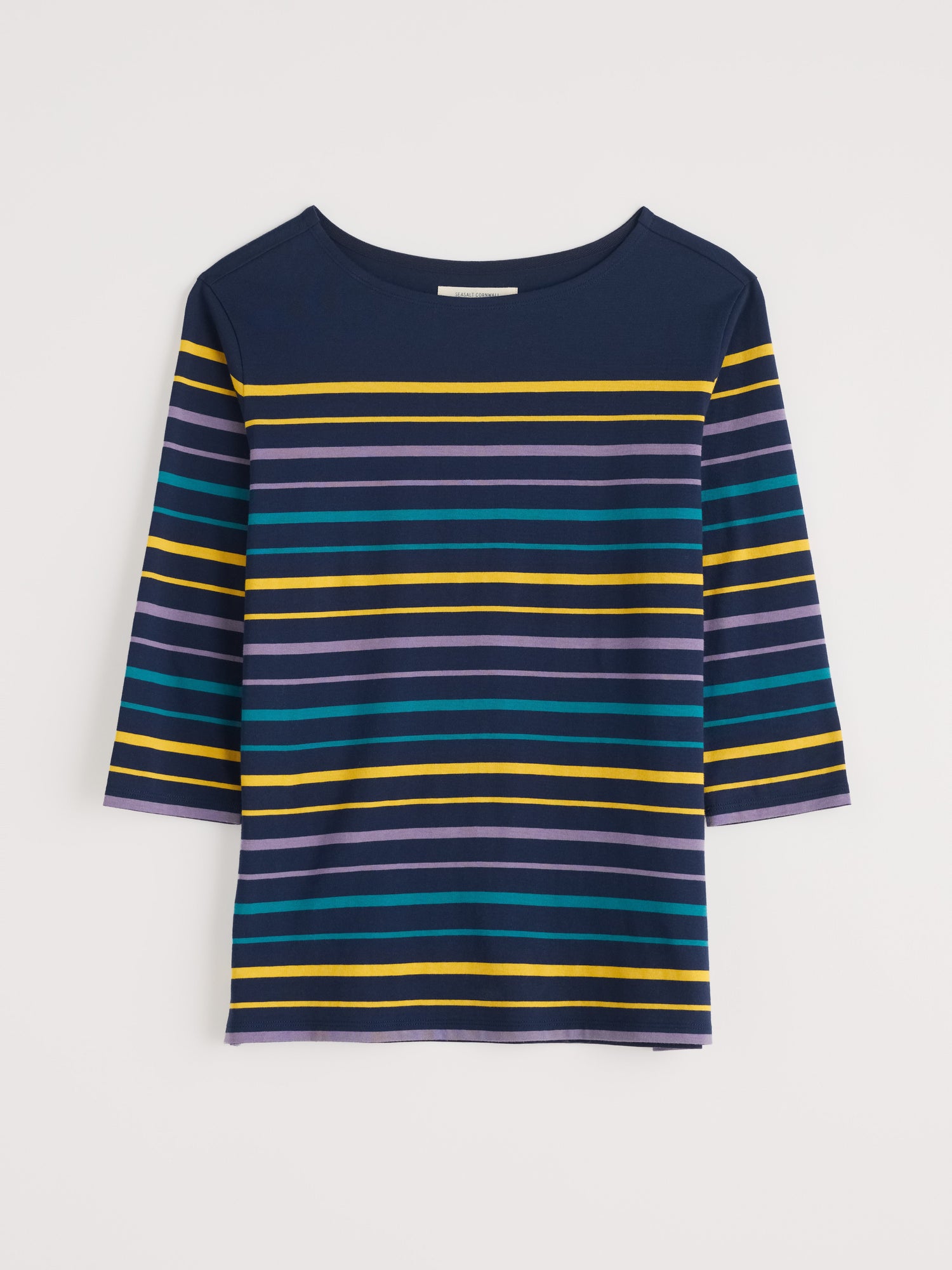 Introducing our Seasalt Sailor Top. Made with organic cotton and featuring a relaxed fit and elegant boat neck, this 3/4 sleeve version of our classic sailor stripes is effortlessly stylish and perfect for layering. Choose from a range of coastal colours in vibrant yarn-dyed patterns. GOTS certified for the highest standard of sustainable and ethical production.