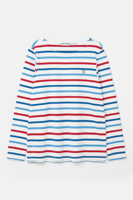 Lighthouse Ladies Causeway Top - Red Teal Stripe