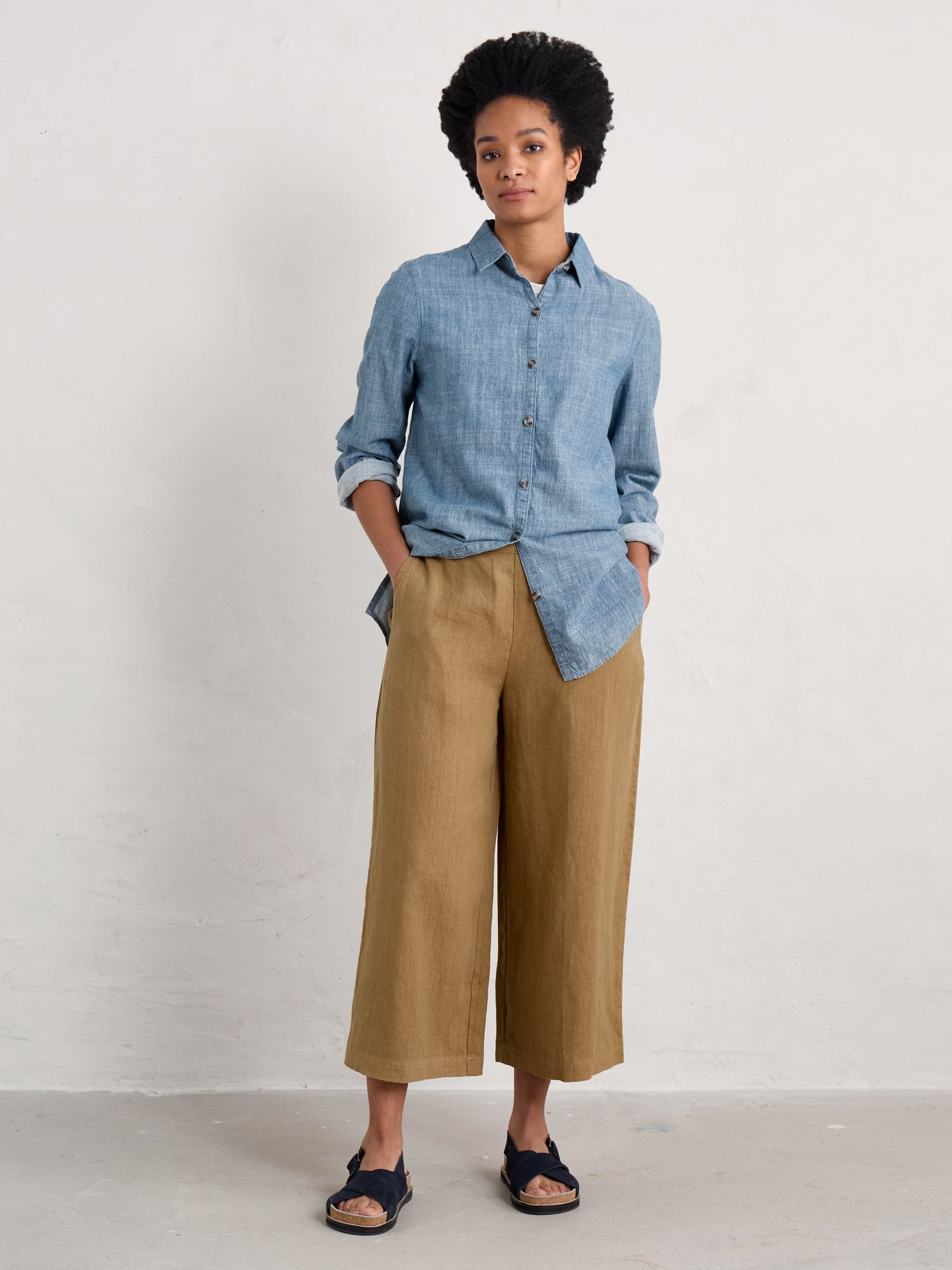 Experience comfort and style with the Seasalt Merrivale Culottes. Made from 100% linen, these simple culottes feature a natural waist and wide cropped leg for a classic look. The breathable fabric will keep you cool and chic all day long. Elevate your wardrobe with these versatile culottes.