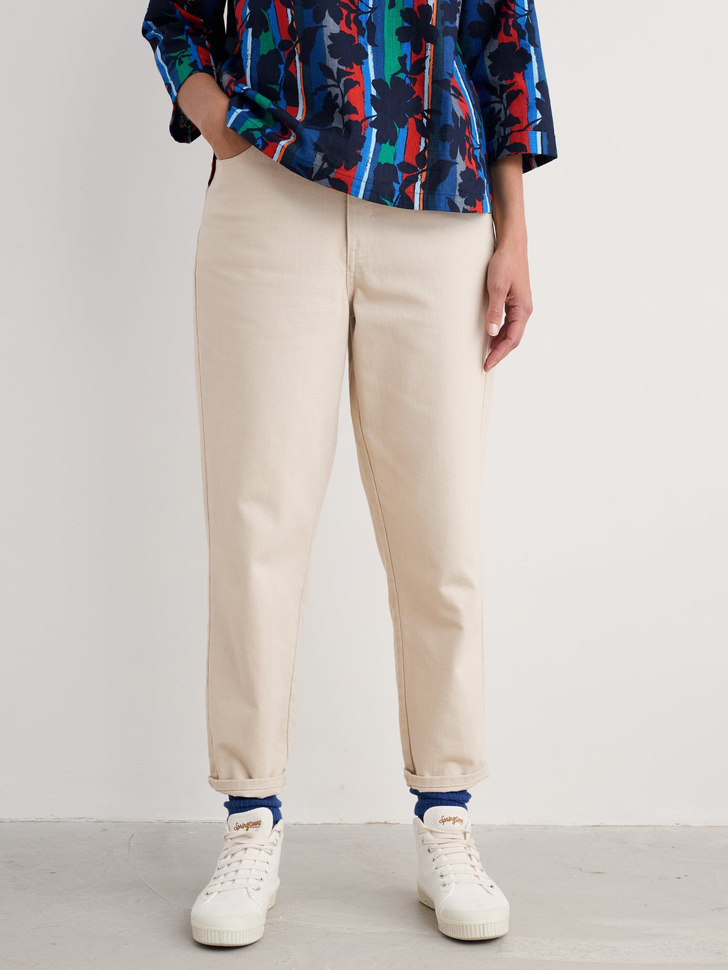 Elevate your wardrobe with Seasalt Towan Jean - Limestone. These modern barrel leg jeans feature a high waist for a flattering silhouette and relaxed fit on the thigh. Crafted from premium organic cotton denim, they offer both style and comfort. With thoughtful details like shape-enhancing back pockets, these jeans are perfect for any occasion.