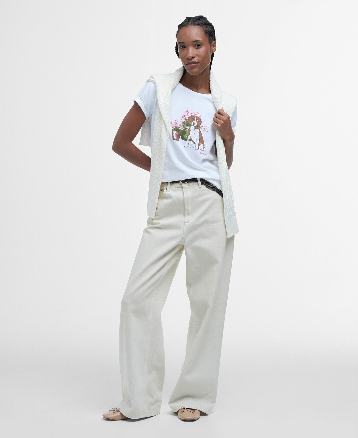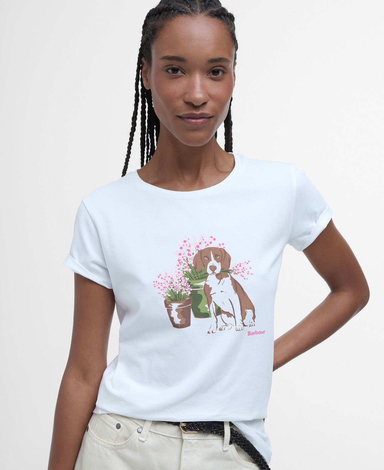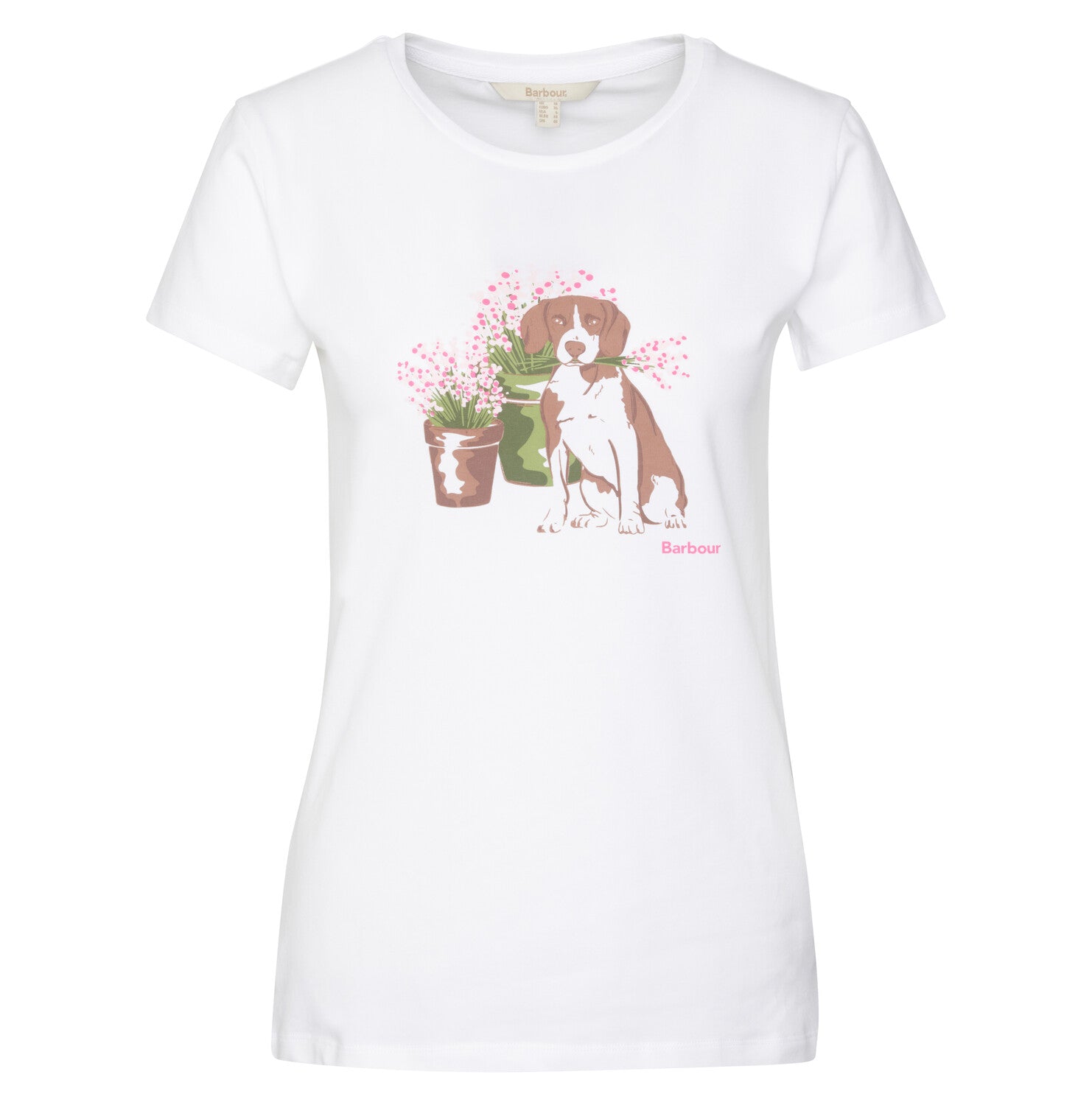 Get ready to fall in love with the Barbour Bowland T-Shirt in white! Perfect for dog lovers and fashion enthusiasts alike, this tee is a must-have staple for any wardrobe. With its comfortable fit and versatile style, it's perfect for all your casual outings. Add it to your collection now and never be without a cute and reliable top again!
