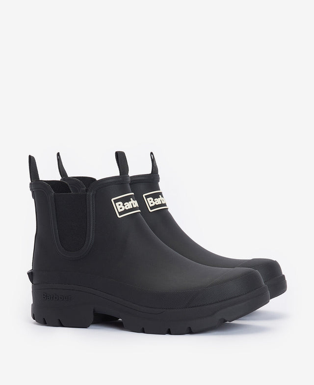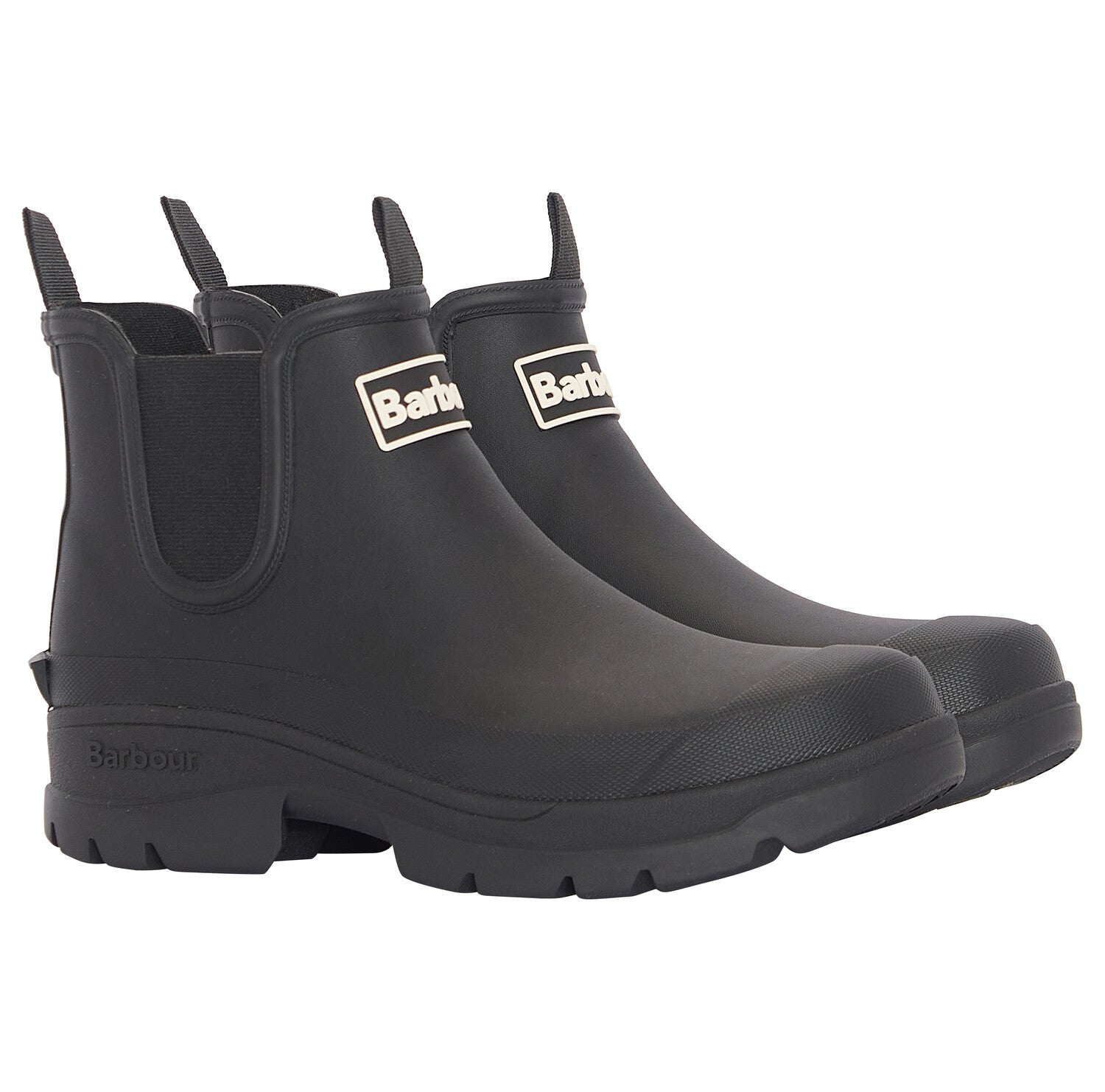 Introducing the Barbour Nimbus Chelsea Welly in classic black! These rugged boots feature a Chelsea style design with a durable, exclusive sole, providing both style and functionality. Perfect for any outdoor adventure.