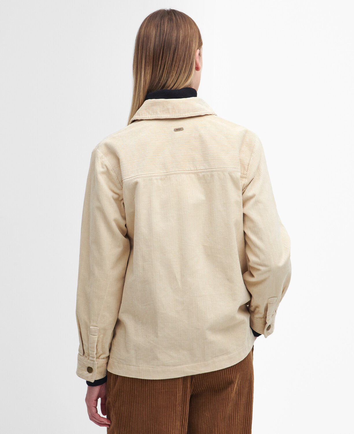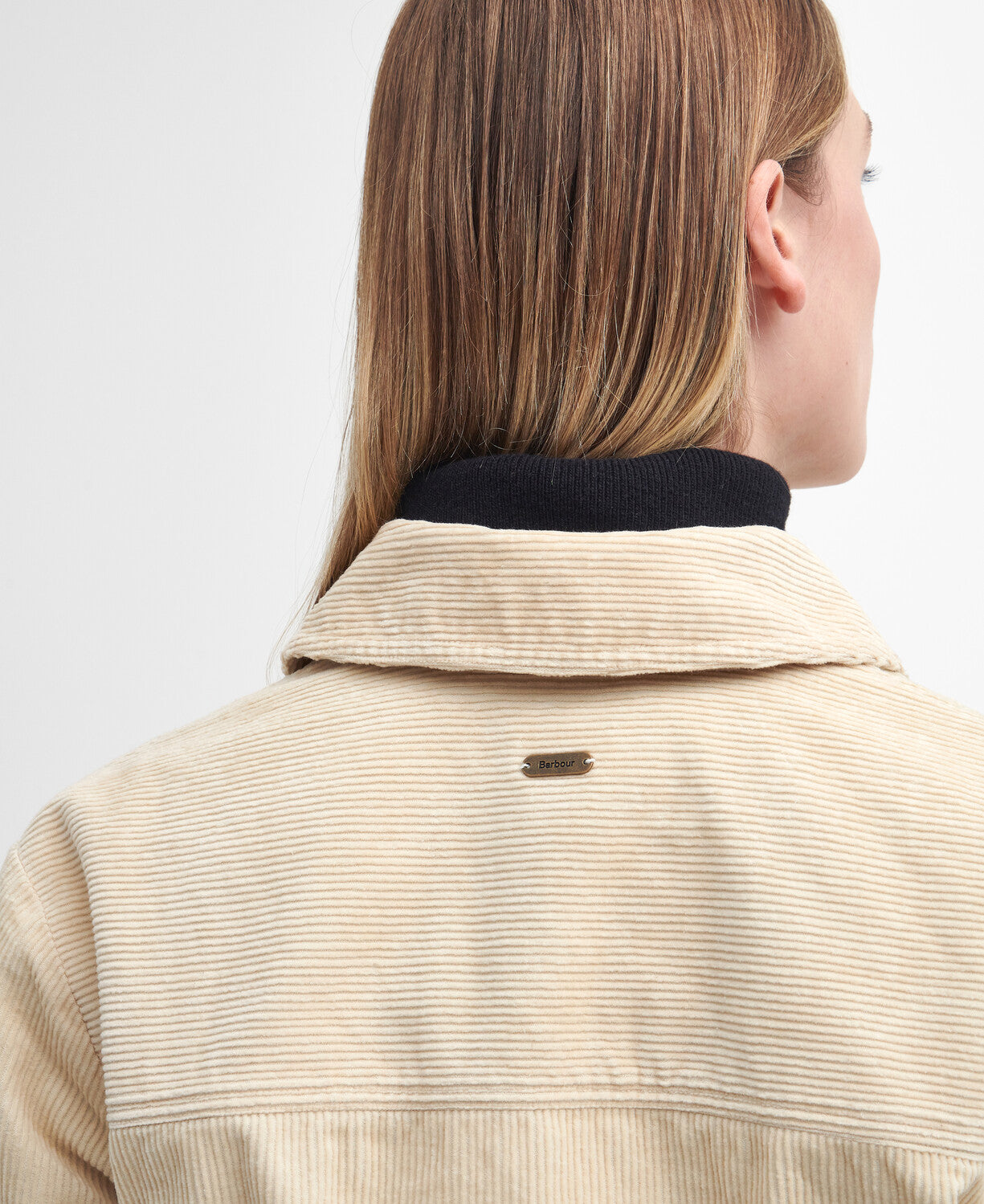 Barbour branded back neck tape. Branded shank buttons. Barbour woven patch to centre back neck.