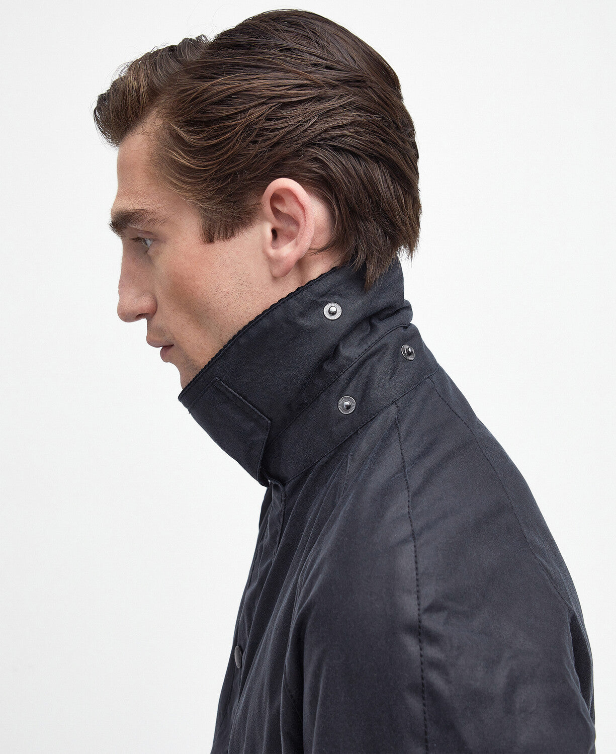 The Barbour Ashby Wax Jacket in Navy is a versatile and durable all-seasons jacket. Made from the signature 6oz Sylkoil waxed cotton, it is practical and stylish with a comfortable feel. Classic features include a 'Stormfly' front, angled handwarmer pockets, and compatibility with Barbour's optional zip-in liners. Stay stylish and functional with the Ashby Wax Jacket!