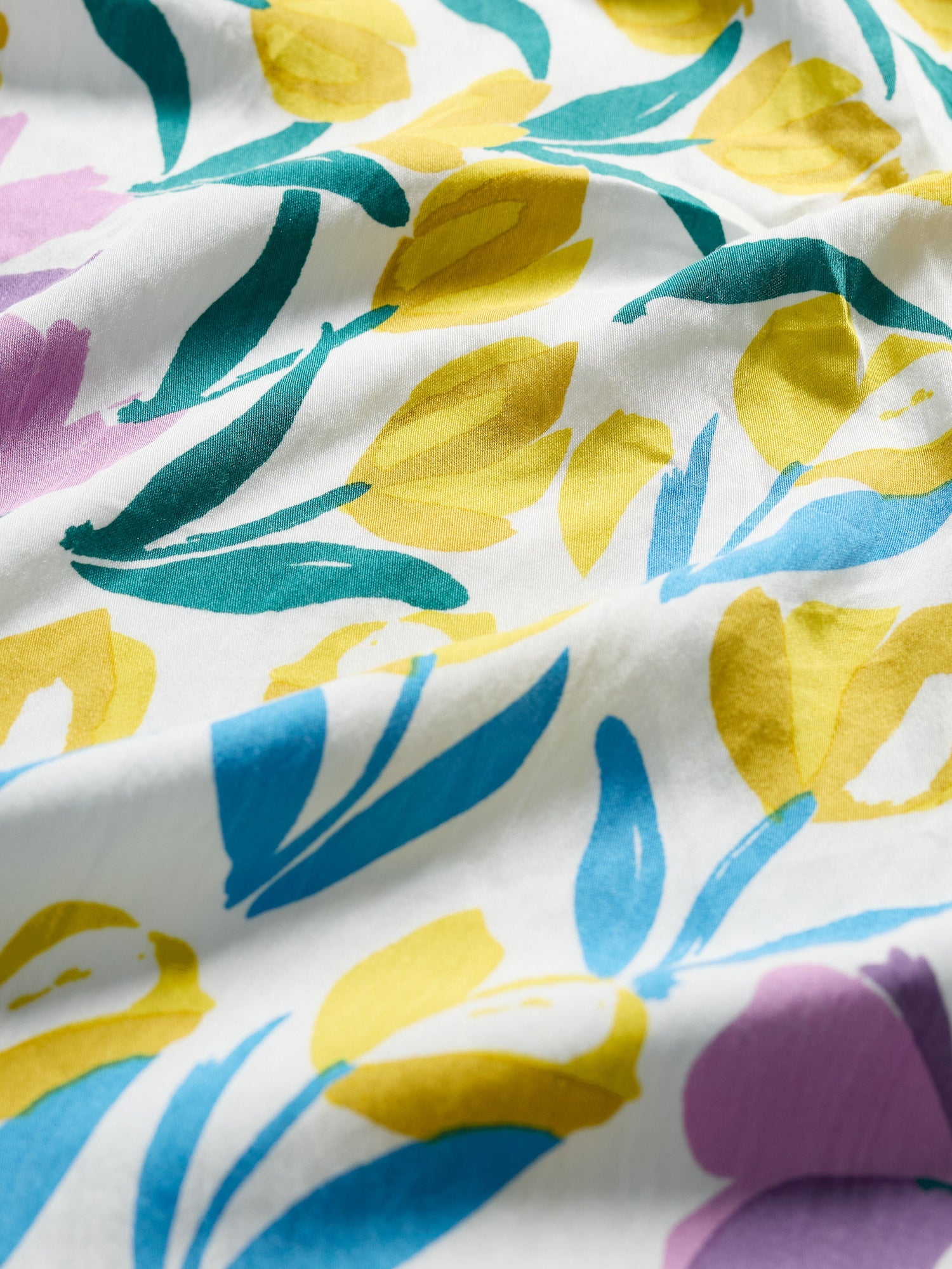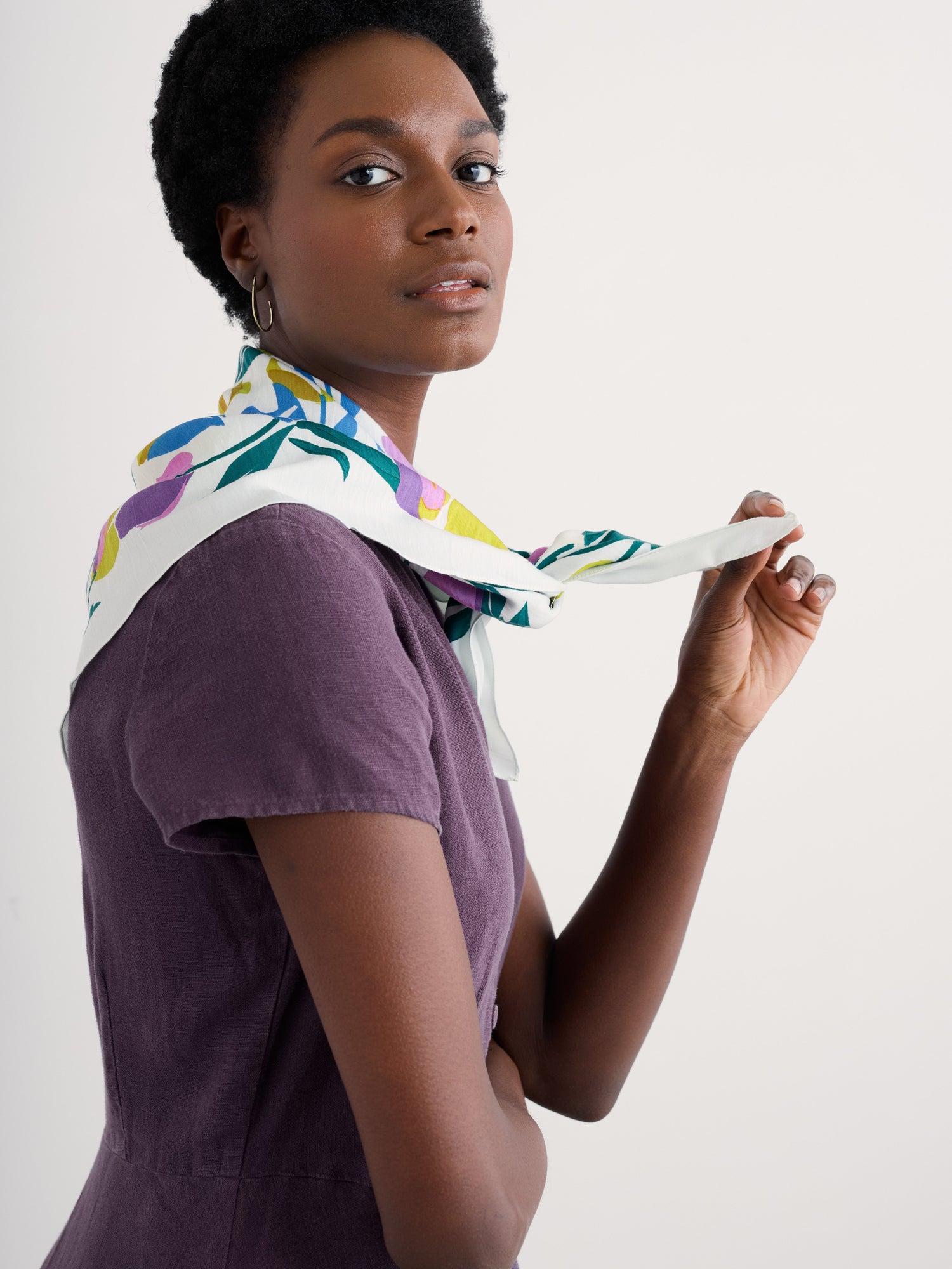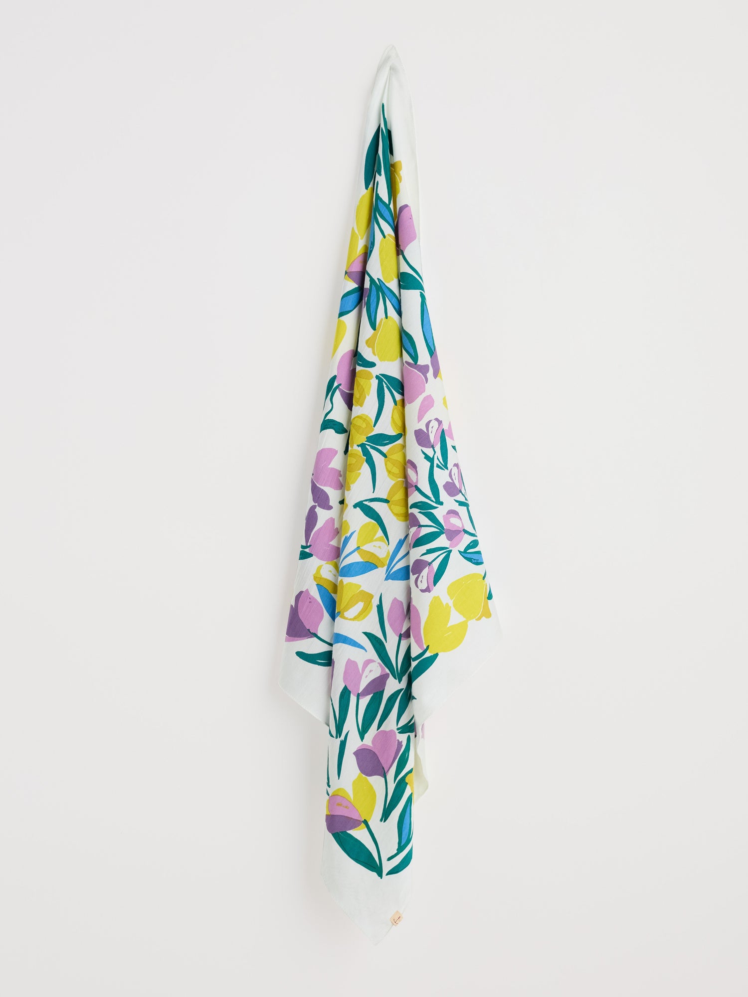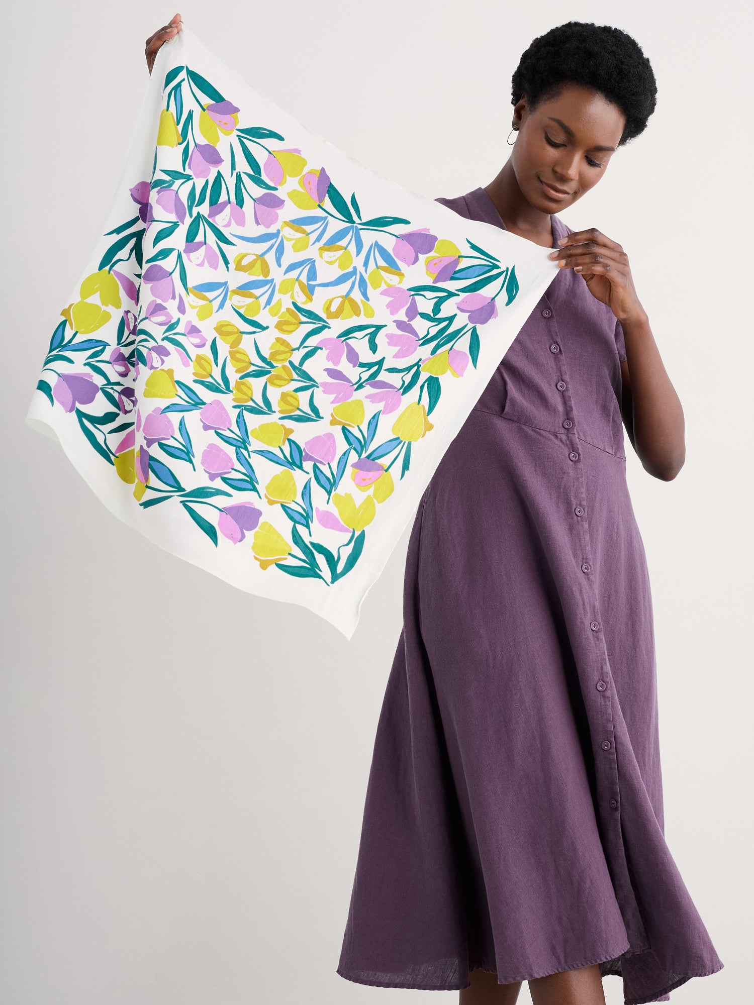 Elevate your style with our new May Garland Square Collaged Tulips Border Chalk! Adorned with unique Seasalt prints and detailed with patterned borders, these lightweight squares add a personal touch to any outfit. Made with organic cotton, they are soft, smooth, and always drape beautifully. Transform your look with a touch of color and creativity.
