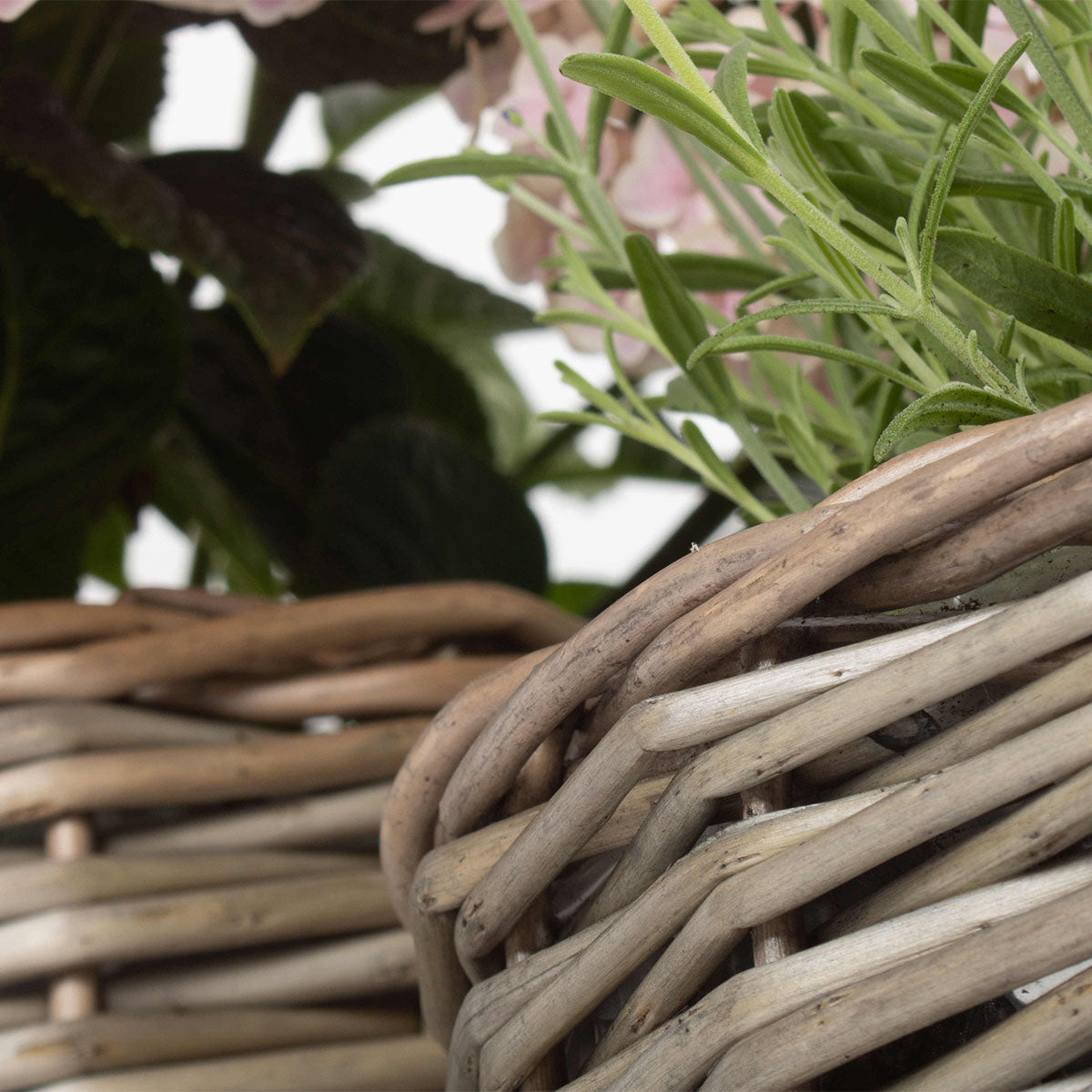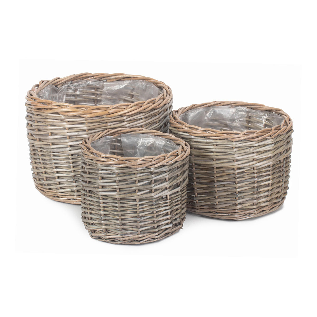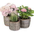 Enhance your home or garden with this beautiful set of 3 round antique wash planters, crafted from full antique wash finish willow for a timeless, rustic look. Each planter is lined with protective plastic, making them ideal for indoor and outdoor use.
